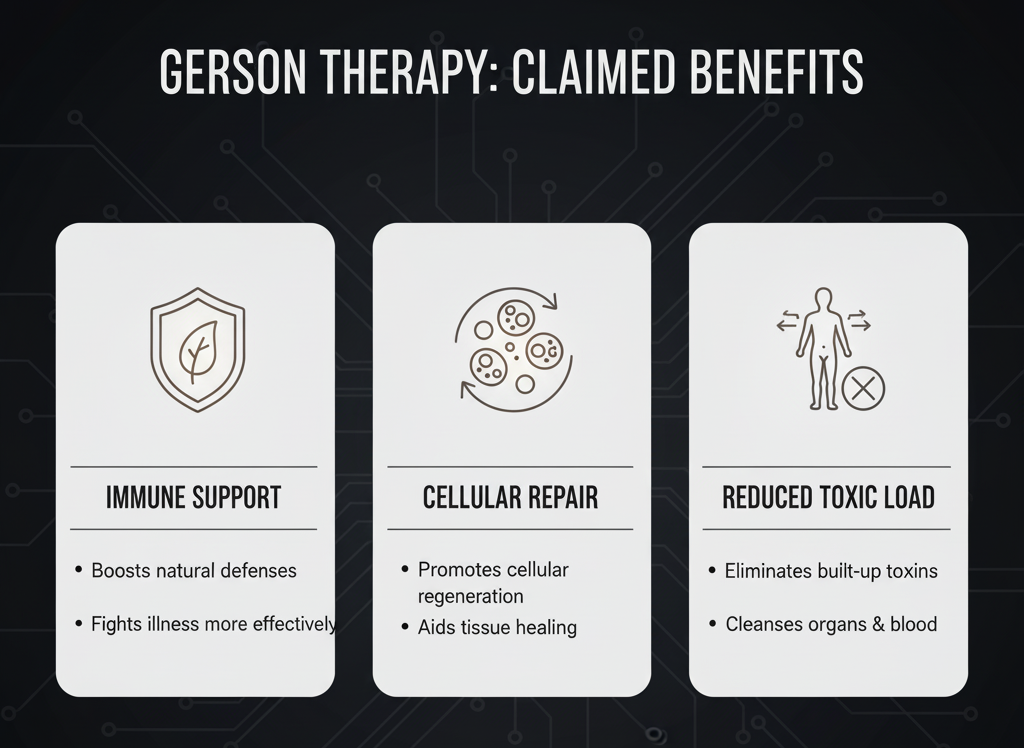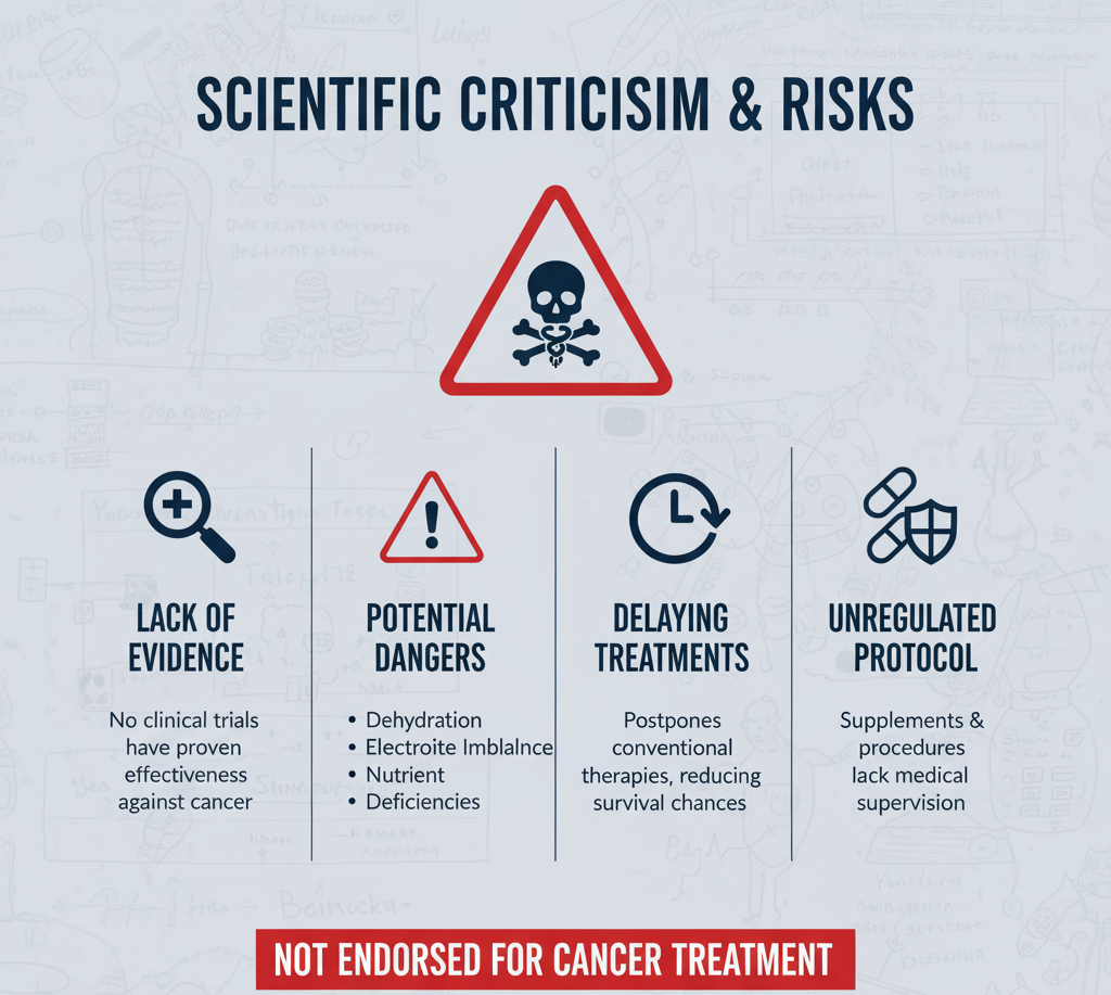 • Risk of delaying proven treatments: Patients may postpone or reject conventional therapies in favor of Gerson, reducing survival chances